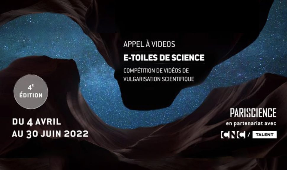 En partenariat avec le CNC Talent, Pariscience lance la 4e édition d’E-toiles de Science, compétition de vidéos de vulgarisation scientifique. Vous avez jusqu’au 30 juin 2022 pour inscrire votre vidéo et participer à l’aventure !