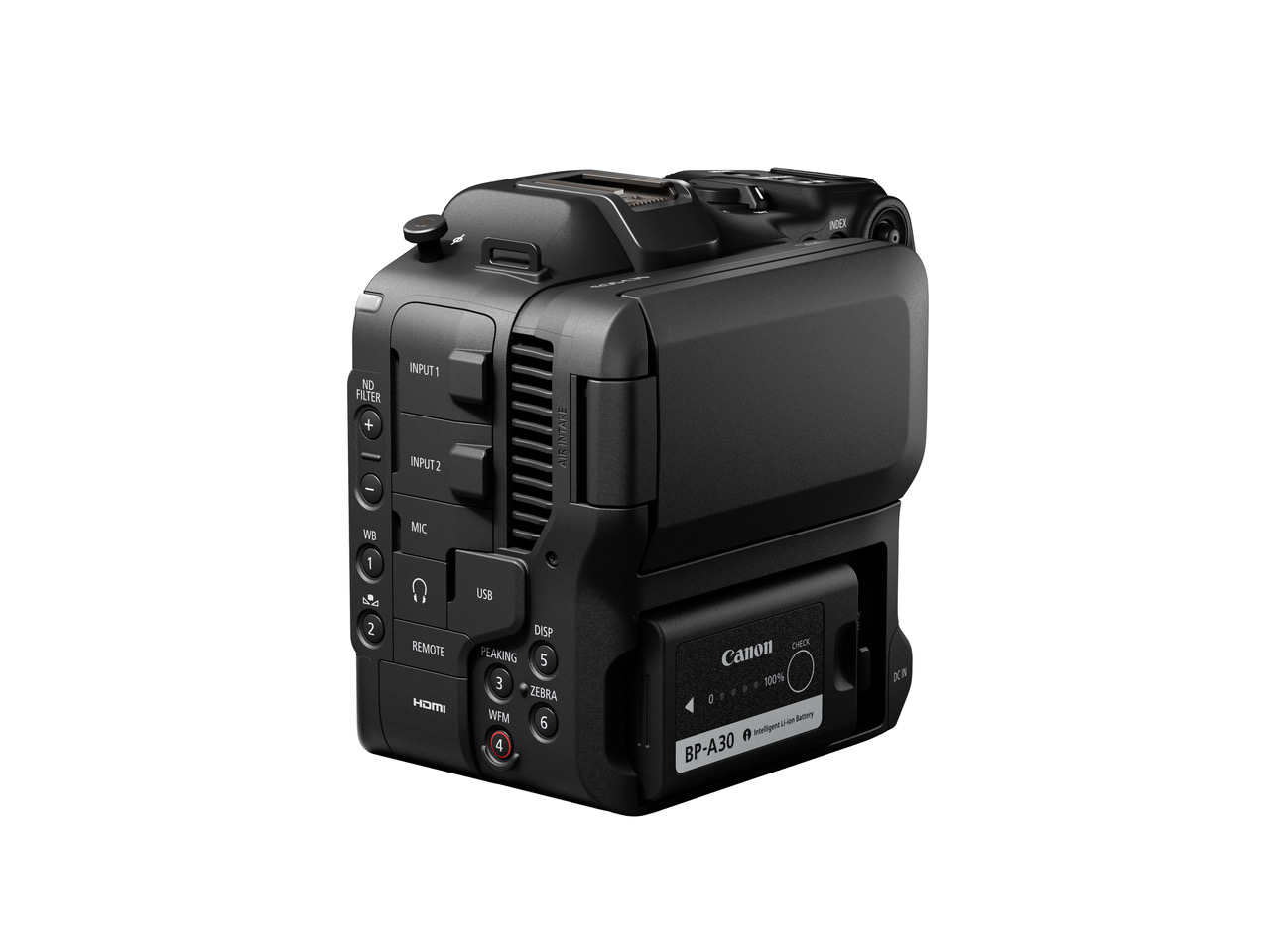 Son capteur CMOS capteur DGO (Dual Gain Output), identique à celui de la C 300 et donc d’une résolution de 9.6 megapixels (4206 x 2280), peut prendre en charge jusqu’à 16 stops de dynamique et bénéficie de la science des couleurs Canon… Ce capteur bénéficie aussi d’une intelligence artificielle qui autorise un mode reconnaissance facial et de tracking pour un suivi de mise au point automatique à partir de l’identification du sujet d’une simple pression du doigt sur l’écran de contrôle. Donc, pour résumer, en dépit de sa petite taille cette caméra a un tigre sous le capot !