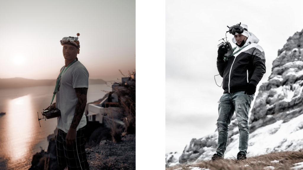 Originaire de Chamonix, Arthur, télé-pilote réputé pour ses images acrobatiques de skieurs, a longtemps rêvé de Wing Suite sans avoir le courage de s’y mettre. « J’ai vu ce qu’on pouvait faire avec le FPV avec mon ami Martin, il m’a mis ses lunettes sur les yeux et là ça m’a complètement explosé le cerveau, j’ai compris que je pouvais monter tout en haut de la montagne, me jeter dans le vide et dévaler à 200 km/h au milieu des arbres sans avoir peur. » avec comme seuls risques, celui d’exploser son drone, perdre 600 € et faire une randonnée pour le récupérer… « on est souvent amené à suivre des athlètes, filmer des artistes et c’est quelque chose d’ exceptionnel parce qu’on est vraiment avec eux. » Après quelques mois d’apprentissage sur simulateur, « c’est venu petit à petit, jour après jour, et toutes les semaines, j’allais m’entraîner, et même aujourd’hui je continue à m’entraîner parce qu’on est dans des prestations où on n’a pas de marge d’erreur, souvent sur des clips par exemple ou des défilés de mode, on est au milieu d’une vingtaine de mannequins, on ne peut pas se permettre de toucher un bras, ou percuter un mur. Il faut être vraiment sûr de son engin, bien connaître les limites, savoir dire non aussi » à des réalisateurs qui poussent les pilotes à l’extrême : « approche de son visage, fait un tour au-dessus d’elle, et puis passe entre ses jambes… », ironise Arthur.