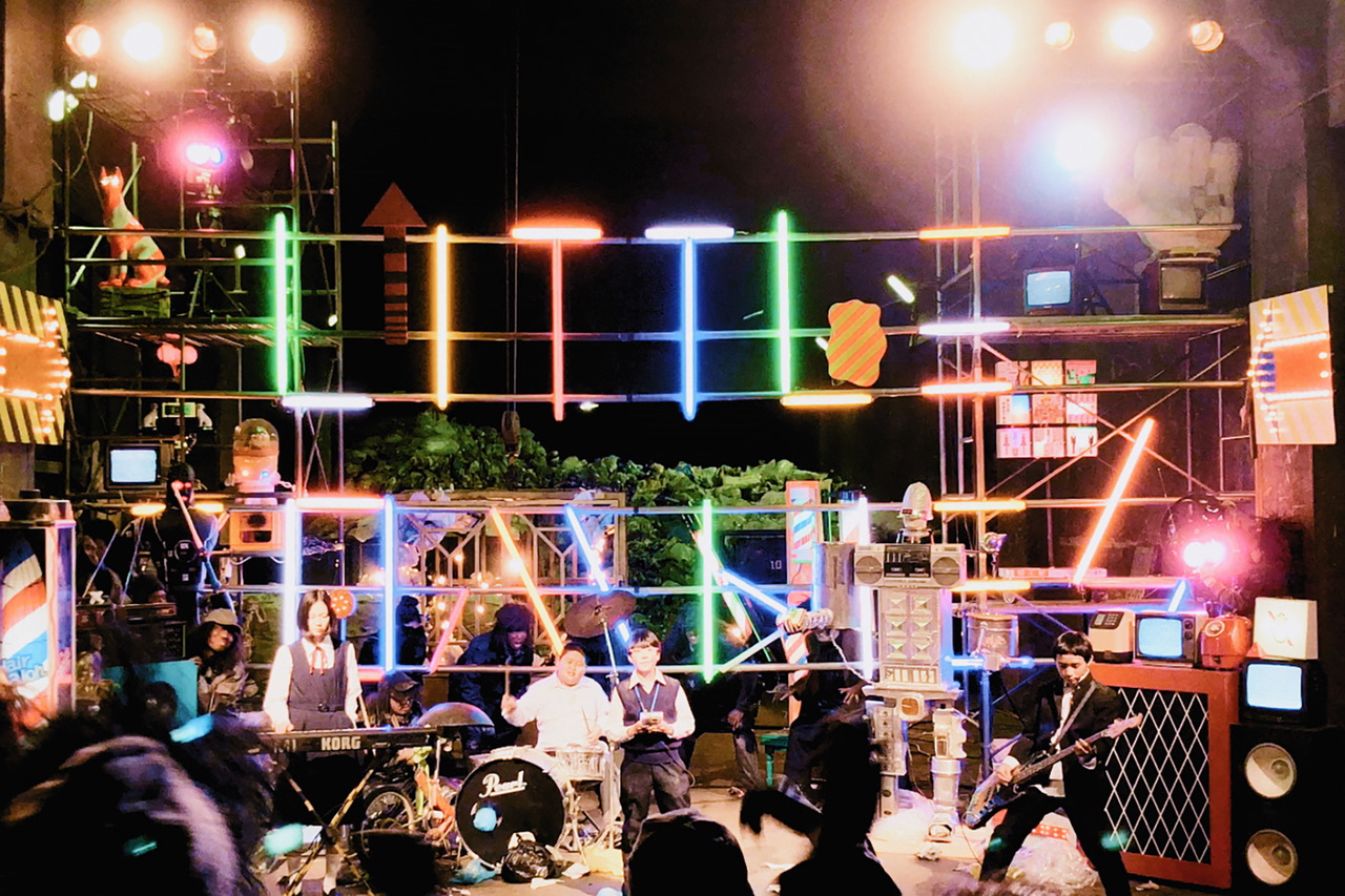 La première performance du groupe LITTLE ZOMBIES est probablement la scène la plus mémorable du film. La méthode de tournage a été longuement discutée pour créer un parti pris visuel qui tranche avec le reste du film…