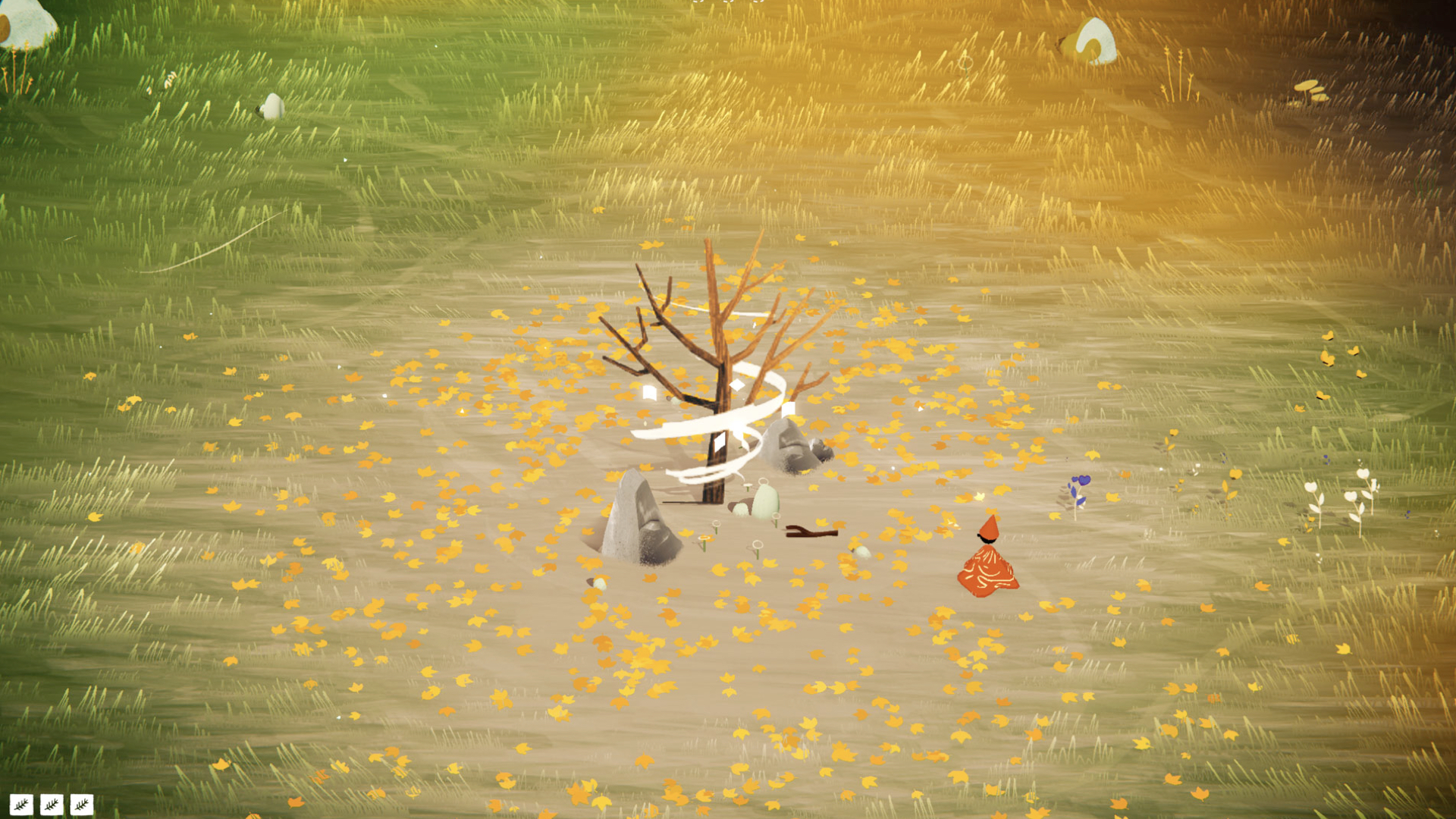 À l’image du rapport de compromis mutuels qu’entretiennent les humains avec le monde naturel, le jeu consiste à faire avancer un personnage mystique à travers la forêt, la prairie et la toundra, à la recherche de capsules poétiques qui parsèment le paysage. Une fois activées, les capsules dévoilent les mots que dissimule le vent, insufflant une vie nouvelle à la flore et à la faune environnantes. Des fleurs se mettent à pousser sous les pas du personnage, les arbres nus se couvrent de feuilles, des oiseaux et des papillons apparaissent. Au fil du parcours, les mots révélés se conjuguent, composant des vers qui traduisent en poésie notre éternel besoin d’immortaliser ces instants fugitifs.